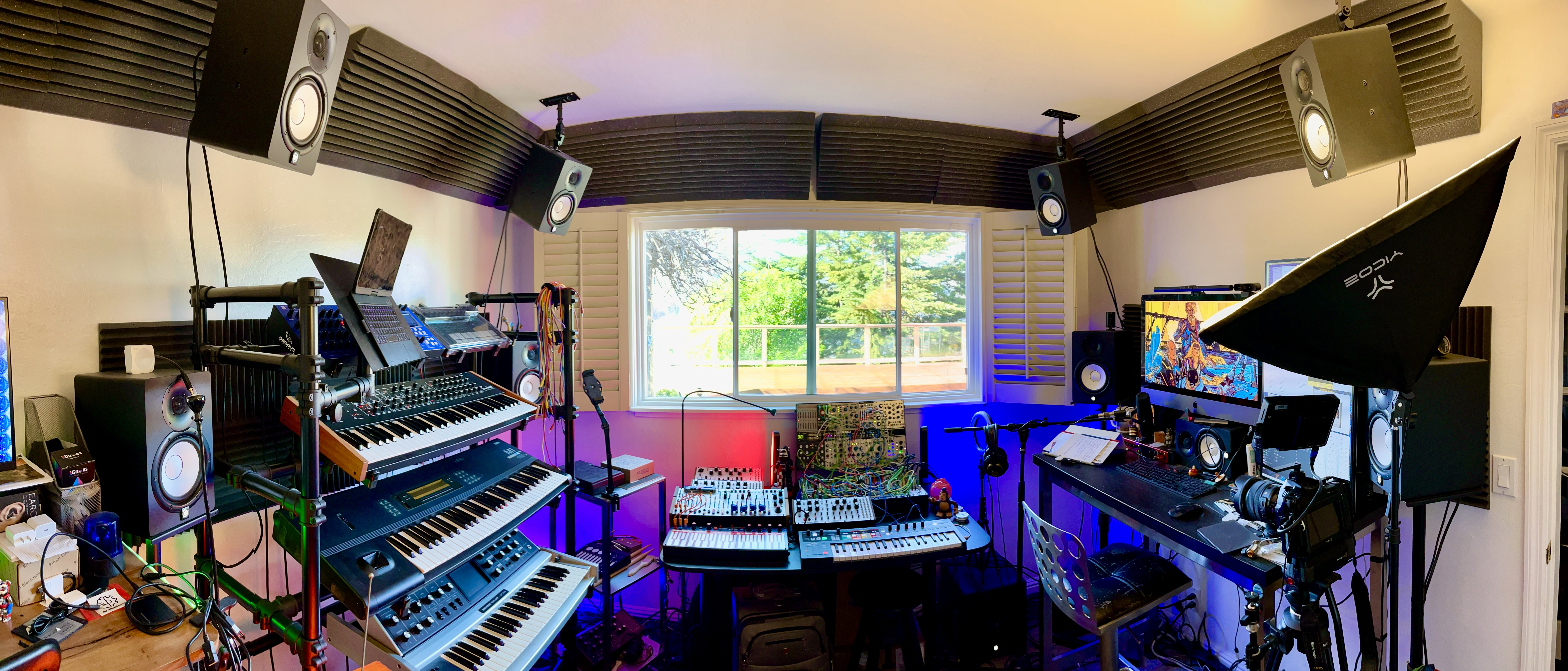 I started making music in stereo with a simple Focusrite scarlett interface 4i4, two Yamaha HS7 monitors on stands and a Mac with Logic Pro. I would produce some tracks or record from my stereo modular synthesizer. Already I loved to play with the stereo space and make sounds move from left to right and vice versa.
