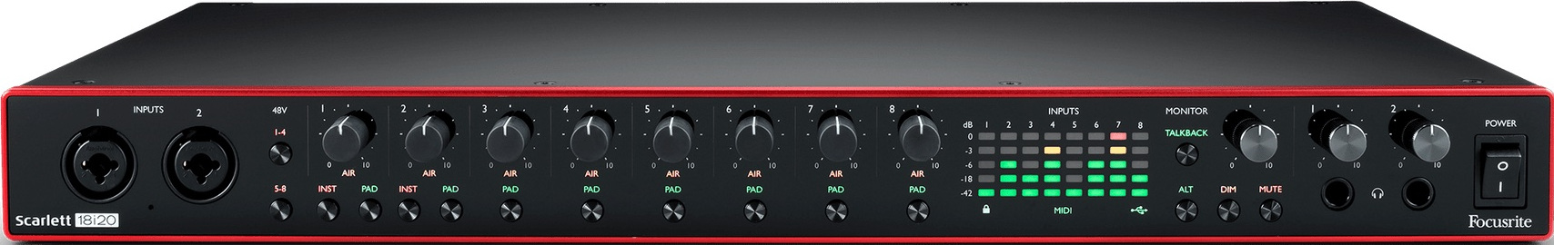 The Focusrite Scarlett 18i20 has 10 outuput and this would allow me to do 5.1.4, however it would nullify the two stereo outputs on the front. I did not really need them anymore, as it is best to listen to Dolby Atmos on speakers than headset. And if I need an headset experience, I wear my iPod Pro and connect them to my Mac via blutooth.