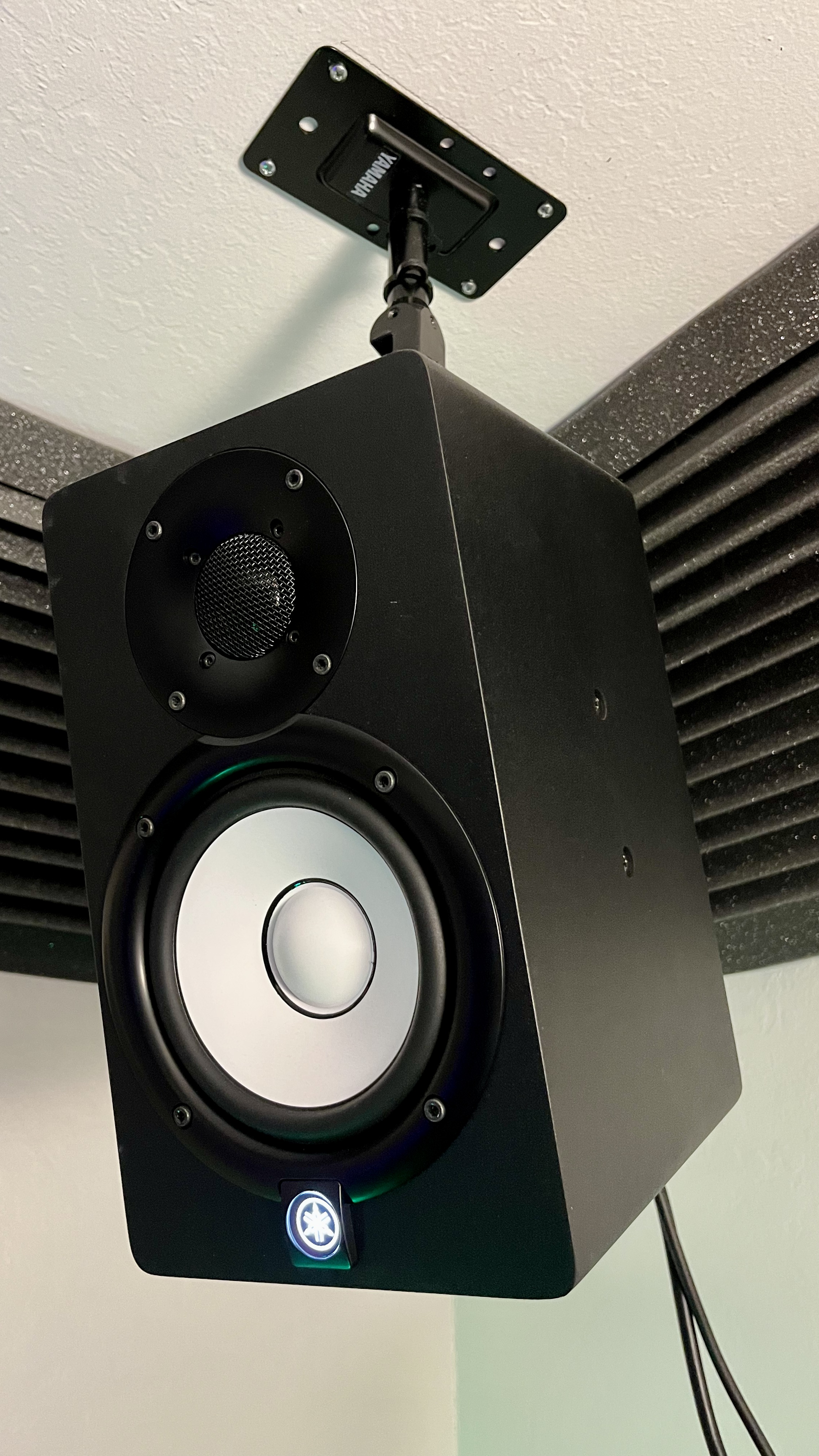 To keep everything with the same color, I bought one Yamaha HS5 for the center speaker and four Yamaha HS5M with their mounting brackets.