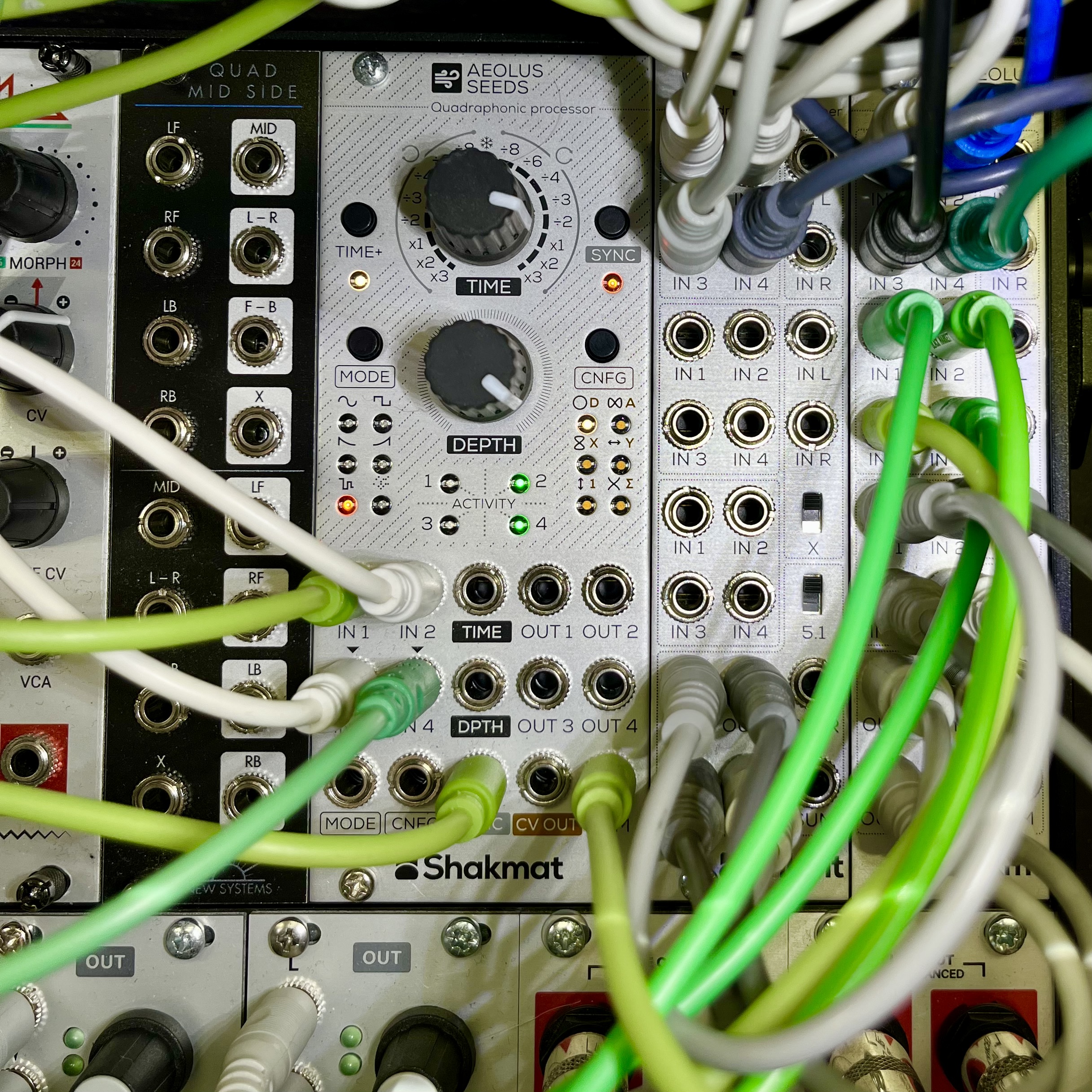 All these modules, besides the Shakmat Aeolus Mixer, are useful in a stereo rack on their own. So you can start with them in stereo before upgrading to quadraphonic.